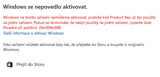 Pokud aktivace proběhla, máte hotovo. Pokud neproběhla a zobrazí se chybová hláška viz níže, je třeba aktivovat operační systém pomocí telefonní linky Microsoft.